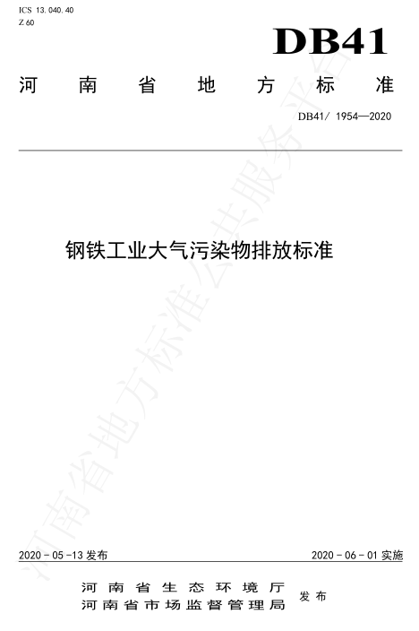 地方 | 河南省发布钢铁工业大气污染物排放标准
