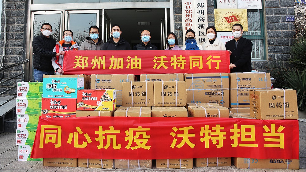 自郑州市疫情发生后,郑州沃特节能科技股份有限公司始终关注疫情变化情况,积极履行企业社会责任担当。为助力郑州一线抗疫工作,今日,沃特节能向郑州市高新技术产业开发区管委会枫杨园区运营中心和枫杨街道办事处,送达口罩、酒精等抗疫物资以及食品和蔬菜。